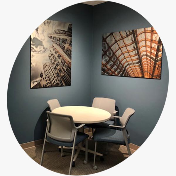 We tailor our selections to unique spaces, taking into account lighting, position, accessibility, foot traffic, viewers and overall themes. We cultivate personal relationships, carefully listening to our clients’ needs, expectations, sense of aesthetic and core business to ensure the seamless fit of art into the work environment and corporate image. Our thoughtful art selections tell a story, reinforcing corporate values and identity that contributes to a harmonious working atmosphere.